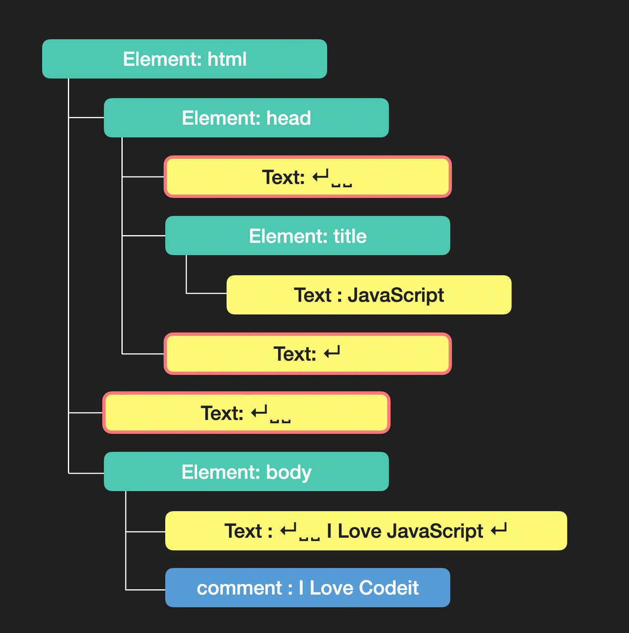 그 이유는 DOM 트리가 만들어질 때 생겨나는 노드들을 좀 더 자세히 살펴보면 알 수 있는데요.