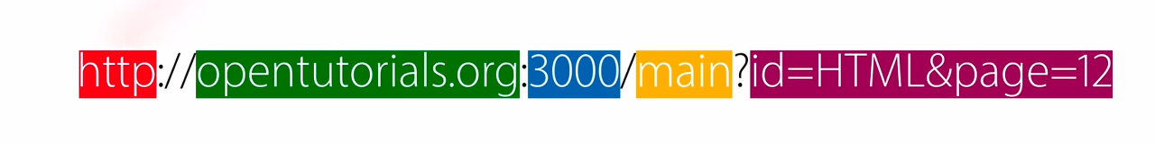 예를 들어 http://opentutorials.org:3000/main?id=HTML&page=12 라고 되어있는 주소가 있다.