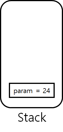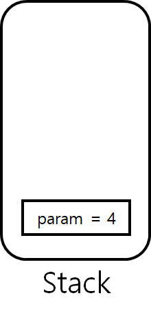 Stack영역에 param이라는 변수명이 할당되고, param변수의 타입인 int는 원시 타입이므로 이 공간에는