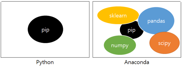 파이썬은 기본적으로 패키지 관리 시스템인 pip만을 포함하고 있습니다.