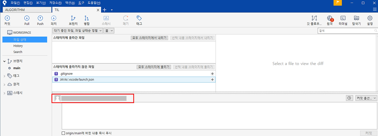 여기에 기본 사용자 정보를 바꿔줍니다. (여기까지만 해도 깃에 표시됩니다.)