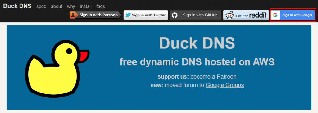 일단 Duck DNS로 가서 구글 ID로 로그인 하도록 합니다.