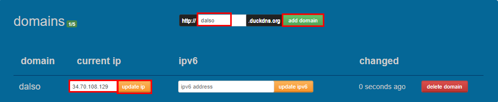 저는 일단 dalso.duckdns.org로 등록해보겠습니다.