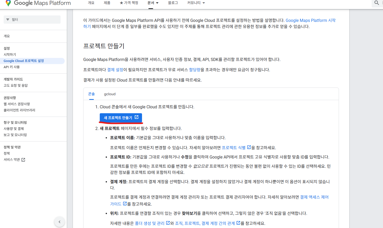 우선 구글 API를 사용하기 위해 본인의 구글계정으로 프로젝트를 생성해야 한다. 아래 링크를 통해 생성하도록 합시다.