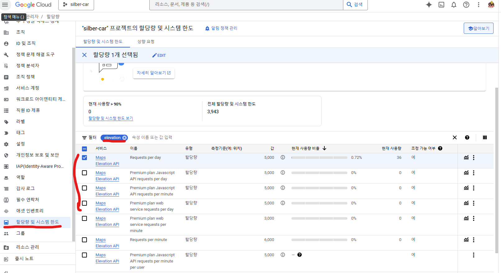 위 링크에서 API 사용량 상한 설정 설명을 보고 API 할당량 제한을 걸어보자.