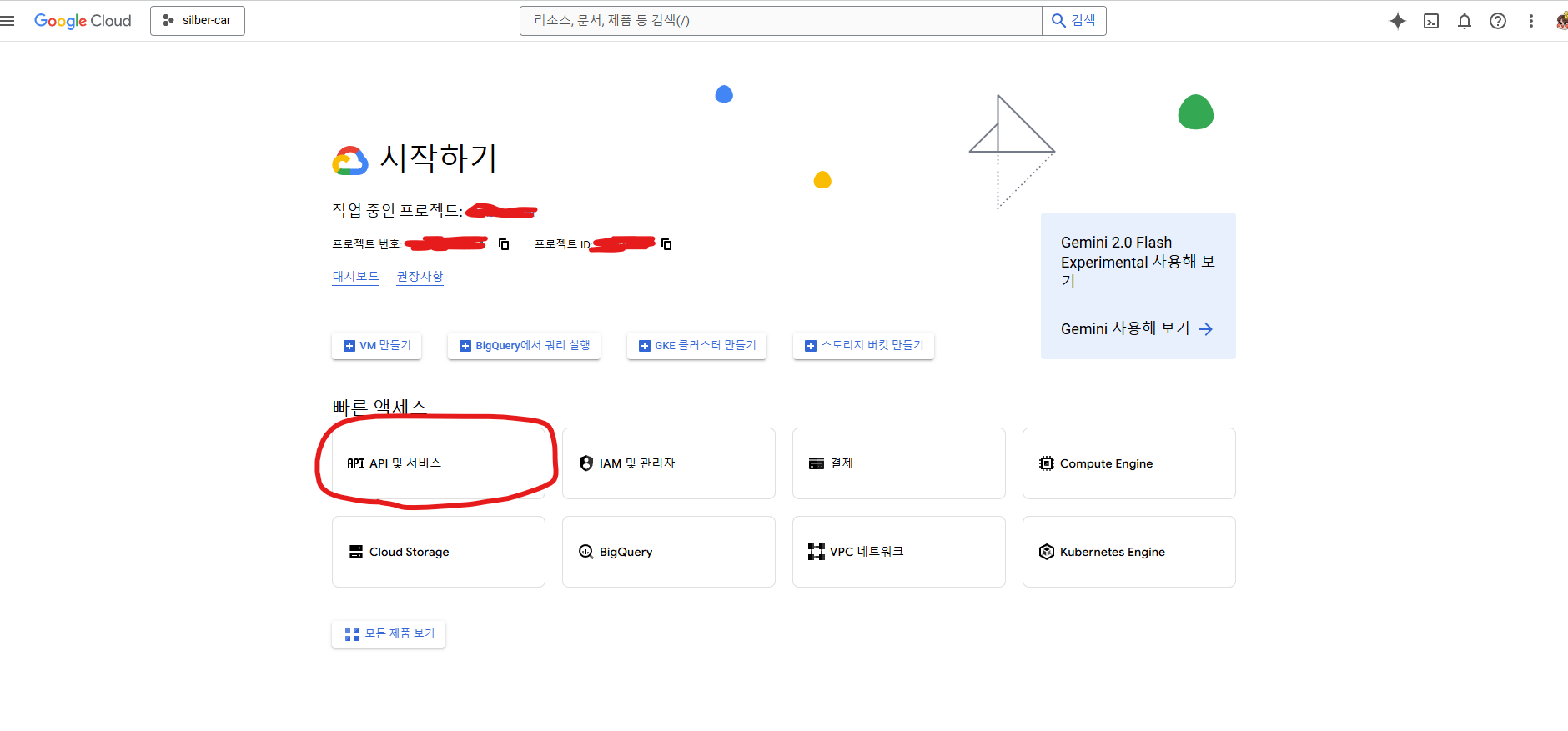 프로젝트를 만들었다면 API 및 서비스를 클릭한다.