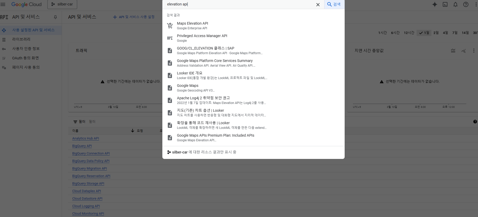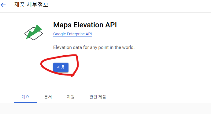 - 검색창에 "Elevation API" 를 입력하고 활성화합니다.