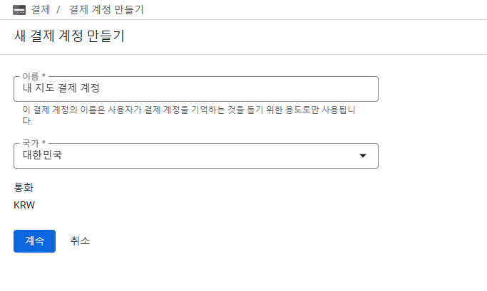 - 결제 계정을 등록해야 API를 사용할 수 있습니다.