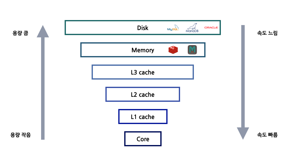 데이터베이스에서 데이터를 저장하고 관리하는 장치로 디스크를 가장 많이 사용한다. 디스크는 메모리 공간이 넉넉한 반면에 속도가 느리다는 단점이 있다. 그래서 메모리에 임시로 데이터를 저장하여 빠르게 읽어올 수 있는 캐시를 사용하여 웹 서비스 성능을 향상시키기도 한다. 메모리에 접근할 때는 나노초(ns)단위로 처리할 수 있으나, 디스크에 접근할 때는 밀리초(ms)단위의 시간이 필요하다. 사람 입장에서는 ms가 빠를 수도 있겠지만 컴퓨터 입장에서는 상대적으로 굉장히 느린 속도이다.